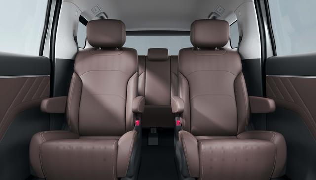 五菱星光730定位紧凑型MPV,车长4910mm、轴距2910mm,较之同级的传祺M6(长4793mm、轴距2810mm),座舱纵横向空间要宽裕许多,因此该车采用2+2+3七座布局的情况下也能保证舒适性,其第三排空间利用率高达88%,而前排座椅则可以180°大角度放平,秒变舒坦大躺椅。不过星光730的乘坐“甜点区”依然放在了第二排,该车配备独立座椅,过道宽度230mm、挑高1.2米,6岁左右的小朋友可以自由活动。此外,星光730还采用魔术翻折后排座椅设计,将第三排靠背放倒+前翻,容积可达1202L,配合大开口尾门,物品进出也很方便。