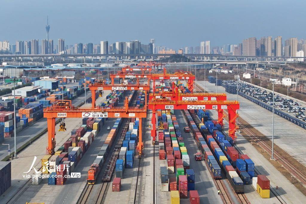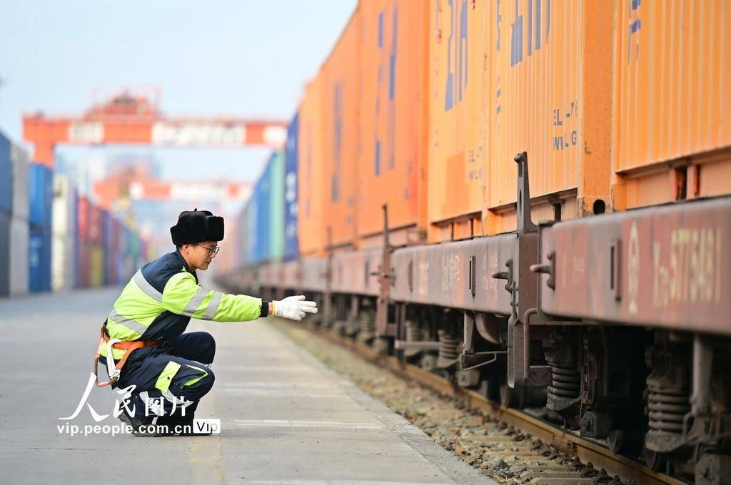 春节期间,来自铁路、海关、物流等部门的工作人员坚守岗位,保障中欧班列(郑州)开行高效畅通。王玮摄(人民图片网)